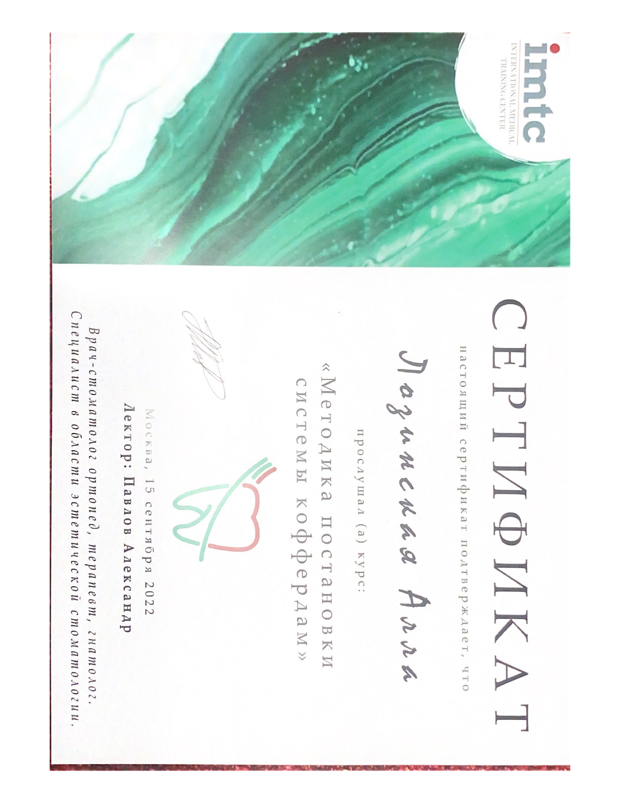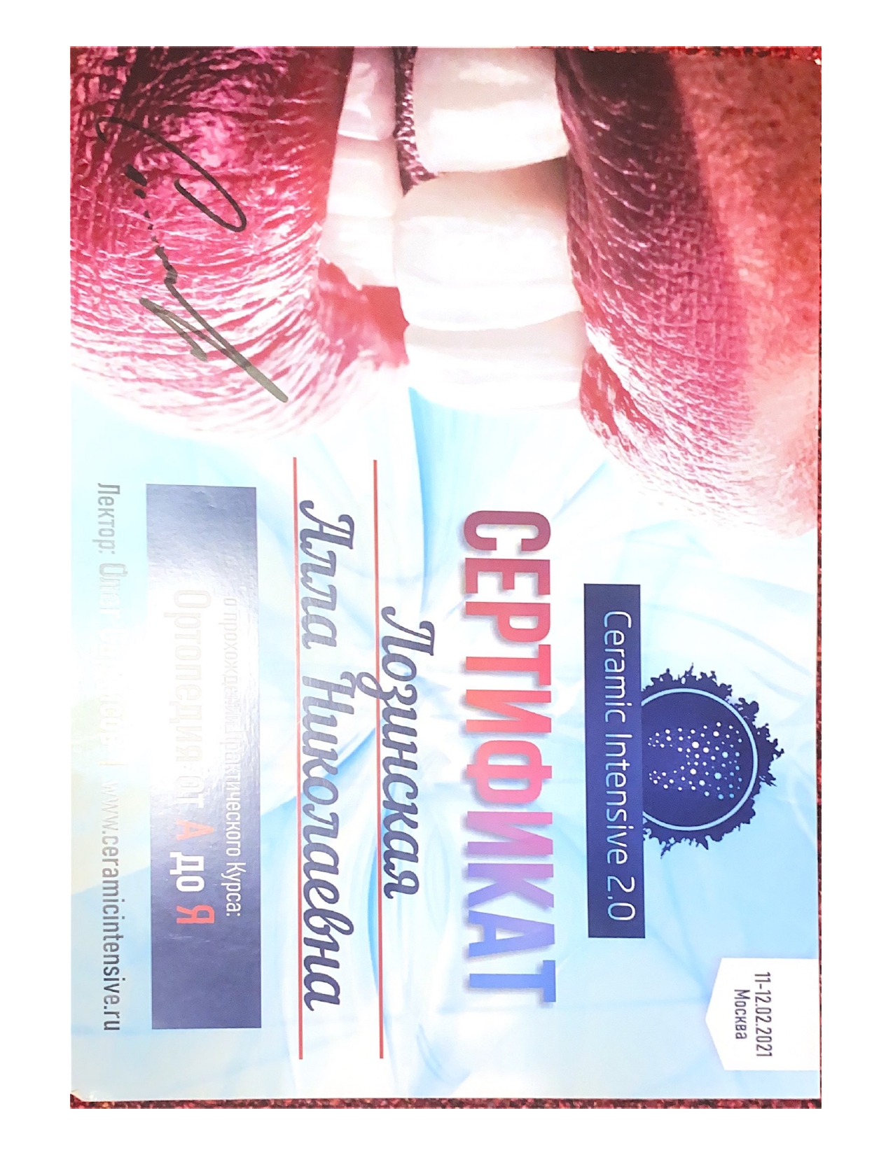 2019 г. — прошла курс Venners and ceramic crowns.Preparation and luting