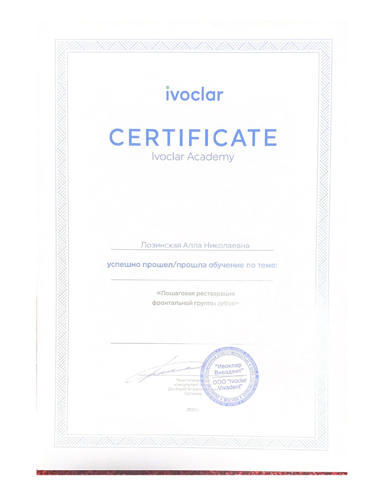 Лозинская Алла Николаевна - стоматолог-терапевт, детский стоматолог